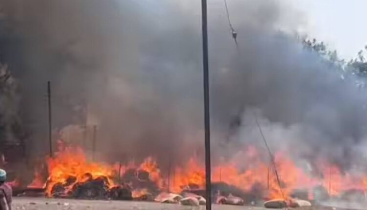 चाळीसगावात मिरची बाजाराला मोठी आग, १२ दुकानांसह मालट्रक व दुचाकी जळून खाक