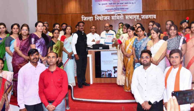 जळगाव | शासनाच्या मुख्यमंत्री माझी शाळा सुंदर शाळा अभियाना अंतर्गत खासगी संस्था गटामध्ये घेण्यात आलेल्या स्पर्धेत तालुकास्तरावर अनुभूती इंग्लिश मिडीअम स्कूल ला प्रथम पारितोषिकाने गौरविण्यात आले. मुख्यमंत्री माझी शाळा सुंदर शाळा अभियानाच्या दुसऱ्या टप्प्यातील पारतोषिक वितरण समारंभ जिल्हा नियोजन भवन येथे पार पडला. जिल्ह्याचे पालकमंत्री तथा पाणीपुरवठा मंत्री गुलाबराव पाटील यांच्याहस्ते हा पुरस्काराचे वितरण झाले. अनुभूती स्कूलच्या प्राचार्य रश्मी लाहोटी, जनसंपर्क अधिकारी रूपाली वाघ, मनोज दाडकर यांच्यासह सर्व शिक्षिका, शिक्षकांनी हा पुरस्कार स्विकारला. याप्रसंगी व्यासपीठावर शहराचे आमदार सुरेश भोळे, जिल्हा शिक्षण आणि प्रशिक्षण संस्थेचे प्राचार्य डॉ. अनिल झोपे, जि. प. प्राथमिक शिक्षणाधिकारी विकास पाटील, गट शिक्षणाधिकारी सरला पाटील, शा पो आ अधीक्षक विजय पवार, प्रशासन अधिकारी खलिल शेख, शिक्षण विस्तार अधिकारी जितेंद्र चिंचोले, नरेंद्र सपकाळे, ज्ञानेश्वर सोनवणे यांच्यासह मान्यवर उपस्थित होते. मान्यवरांच्या हस्ते दीपप्रज्ज्वलनाने कार्यक्रमाची सुरवात झाली. मुख्यमंत्री माझी शाळा सुंदर शाळा स्पर्धेतील पारितोषिक वितरणानंतर तालुकास्तरीय व्हिडीओ निर्मिती स्पर्धेचे पारितोषिक वितरण आमदार सुरेश भोळे यांच्या हस्ते करण्यात आले. त्यात जळगाव तालुक्यातील २१ शिक्षकांचा समावेश होता.
