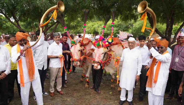जैन इरिगेशन सिस्टिम्स् लिमिटेडच्या कृषी संशोधन व विकास कार्यक्रमांतर्गत जैन हिल्सच्या कृषि विभागातर्फे आयोजित पोळा उत्सवाप्रसंगी प्रथमत: अशोक जैन व सौ. ज्योती जैन, सौ. निशा जैन, सौ. शोभना जैन, डॉ. भावना जैन यांच्यासह जैन परिवाराच्या हस्ते वृषभराजाचे पुजन करण्यात आले. याप्रसंगी जिल्हा पोलीस अधीक्षक डॉ. महेश्वर रेड्डी, सौ. ऐश्वर्या रेड्डी, जेडीसीसी बँकेचे चेअरमन संजय पवार, व्यवस्थापकीय संचालक जितेंद्र देशमुख, डॉ. शेखर रायसोनी, अग्रणी बँकेचे सुनील दोहरे, महाराष्ट्र राज्य क्रेडाईचे उपाध्यक्ष अनिश शहा, आर्किटेक्ट शिरीष बर्वे, स्वरुप लुंकड, पारस राका, गोटूशेठ बंब, नंदलाल गादीया, माजी नगरसेवक अमर जैन, डॉ. उल्हास पाटील फिजोथेरेपीचे प्राचार्य डॉ. जयवंत नागुलकर, नॅचरोपॅथीच्या डॉ. कल्याणी नागूलकर, गांधी रिसर्च फाउंडेशनच्या डीन प्रो. गीता धरमपाल, अनुभूती स्कूलचे विद्यार्थी, गांधी रिसर्च फाउंडेशनचे डिप्लोमाचे विद्यार्थी, पंचक्रोशीतील शेतकरी, शहरातील विविध क्षेत्रातील मान्यवर व नागरिकांची उपस्थिती होती.