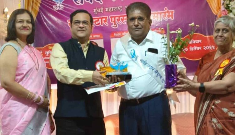मुंबई : डहाणू येथे वास्तव्यास असलेल्या ज्येष्ठ नाट्य चित्रपट वाहिनी अभिनेते दिग्दर्शक भरत दुष्यंत जगताप यांना सर्वद फाऊंडेशनचा कलासाधना रत्नसेवा पुरस्कार औषध तज्ज्ञ, व्याख्याते, डाॅ. महेश अभ्यंकर यांच्या शुभहस्ते प्रदान करण्यात आला. सर्वद फाऊंडेशनचा हा पुरस्कार वितरण सोहळा बोईसर येथील वंजारी हाॅल येथे मोठ्या उत्साहात पार पडला. कार्यक्रमाचे प्रास्ताविक सर्वद फाऊंडेशनच्या संचालिका डाॅ. सुचिता पाटील यांनी केले. विशेष अतिथी म्हणून सुधीर म्हात्रे, साहित्यिक अमोल केळकर उपस्थित होते.