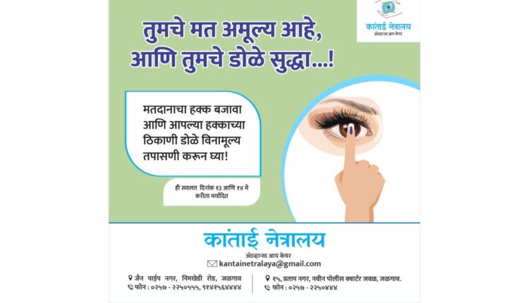 मतदान करणाऱ्यांची विनामूल्य नेत्र तपासणी ; कांताई नेत्रालयाचा उपक्रम