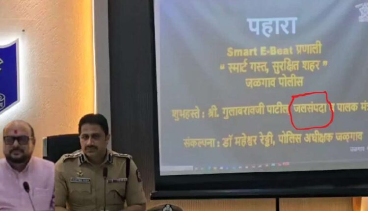 जळगाव पोलीस दलातील कार्यक्रमात डिजिटल स्क्रीन बोर्डवर मंत्री गुलाबराव पाटील यांच्या नावासमोर जलसंपदा मंत्री असल्याचे नमूद केले गेले. जलसंपदा मंत्री गिरीश महाजन असताना गुलाबराव पाटील यांच्या नावासमोर जलसंपदा खाते लिहिण्याची पोलीस दलाकडून चूक झाली आहे.