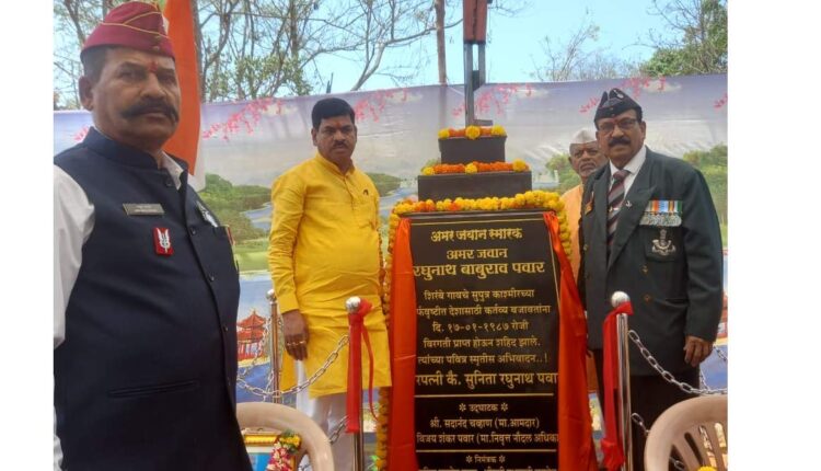 शिरंबे येथील शहीद जवान रघुनाथ पवार यांच्या अमर जवान स्मारकाचे उद्घाटन
