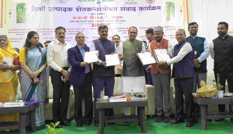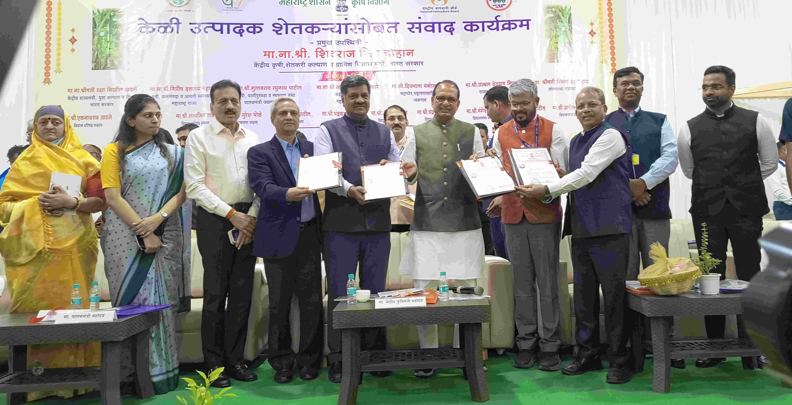 कवयित्री बहिणाबाई चौधरी उत्तर महाराष्ट्र विद्यापीठ येथे झालेल्या केळी चर्चासत्रात केंद्रीय कृषी मंत्री शिवराज सिंह चौहान यांच्या उपस्थितीत कराराच्या प्रतींचे आदान प्रदान करण्यात आले. त्याप्रसंगी केंद्रीय क्रीडा राज्यमंत्री रक्षा खडसे, जलसंपदा मंत्री गिरीष महाजन, खासदार स्मिता वाघ, केंद्रीय कृषी मंत्रालयाचे सहसचिव प्रियरंजन दास, महाराष्ट्र राज्याच्या कृषी आयुक्तालयातील फलोत्पादन संचालक अंकुश माने, आयसीएआर चे एडीजी डॉ. व्ही. बी. पटेल, जिल्हाधिकारी रोहन घुगे यांच्यासह मान्यवर उपस्थित होते.