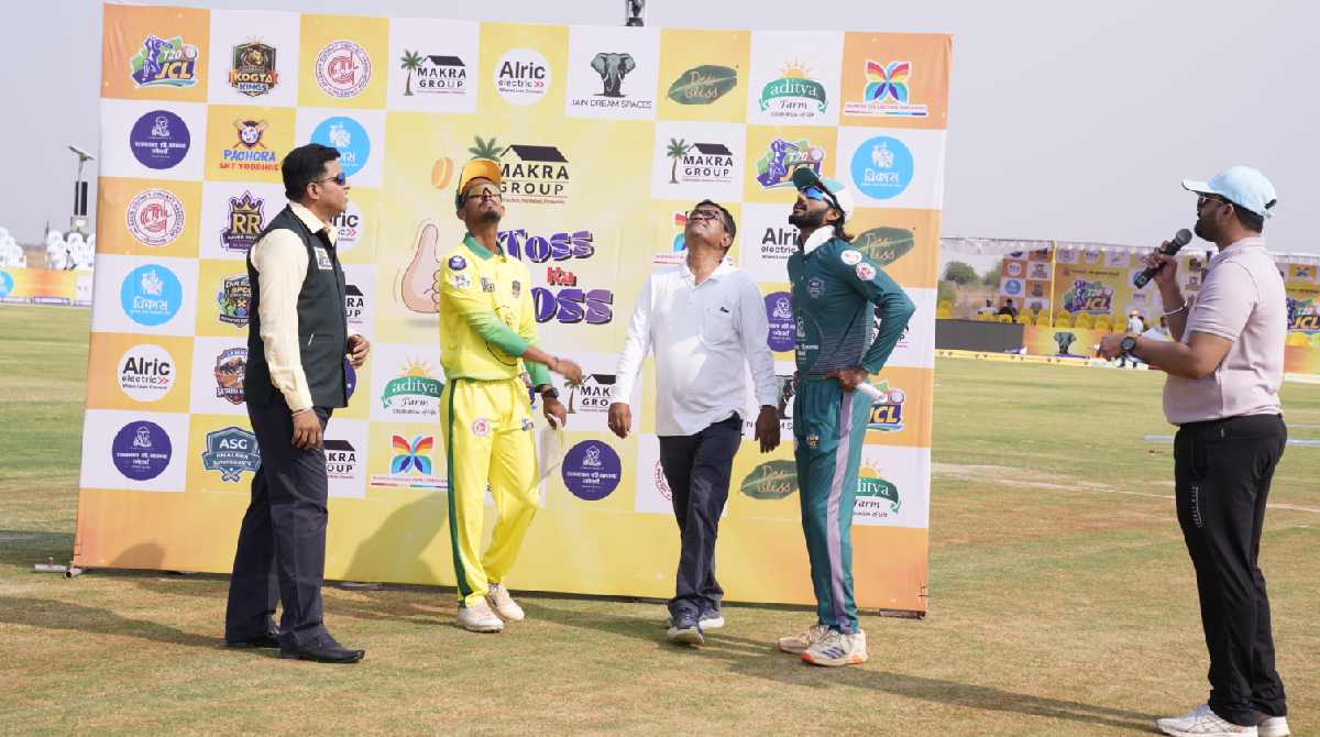 जळगाव | मेहरूण तलावाजवळील कांताईनगर येथील जैन ड्रीम स्पेसेस च्या भव्य क्रीडांगणावर सुरु असलेल्या जळगाव क्रिकेट लिग-२०२६, JCL T-20 स्पर्धेत रोमांच वाढत आहे. जळगाव जिल्हा क्रिकेट असोसिएशनच्या वतीने व रतनलाल सी. बाफना ज्वेलर्स प्रायोजीत व अलरीक इलेक्ट्रीकल्स सहप्रायोजकत्वाखाली आयोजित जळगाव क्रिकेट लिग चा तिसऱ्या सामना अमळनेर सुहांस जायंटस विरूद्ध जळगाव कोगटा किंग यांच्यात खेळविण्यात आला. नाणेफेक अमळनेर सुहांस जायंटस ने जिंकून कर्णधार शुभम शर्मा याने गोलंदाजीचा निर्णय घेतला. नाणेफेकप्रसंगी बीसीसीआयचे पंच विनित कुलकर्णी व जैन इरिगेशनचे वरिष्ठ सहकारी पंकज बऱ्हाटे यांच्या हस्ते झाले. जळगाव कोगटा किंगच्या मजबुत फलंदाजीचे दर्शन आज पुन्हा घडले. पहिल्या चार ओव्हर मध्ये ४४ धावा ओम भोसले व जितेंद्र नाईक यांनी जोडल्यात. धोकादायक ठरत असलेल्या भागीदारीला गौरव ठाकूर ने जितेंद्र नाईकची विकेट घेत तोडली. यानंतर सामन्याचे सर्व सुत्रे आपल्या हाती घेत १० उत्तूंग षटकार खेचत ८ चौकारांसह वादळी खेळी करत सलग दुसऱ्या सामन्यात ओम भोसले याने शतक ठोकले. अवघ्या ६५ चेंडूत १३० धावा करुन त्याने विक्रम रचला. त्याला अक्षय मेघानी २७ चेंडूत ४ चौकाराच्या मदतीने ३३ धावा करत चांगली साथ दिली. निर्धारीत २० षटकांमध्ये ५ विकेटच्या मोबदल्यात जळगाव कोगटा किंगने २२० धावांचे विशाल लक्ष्य रचले.