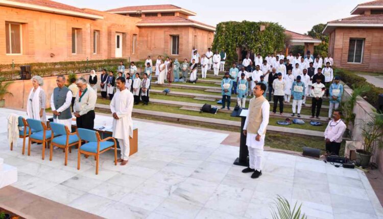 सकाळी ठीक साडे सात वाजता गांधी तीर्थच्या अॅम्फी थिएटर येथे महात्मा गांधीजींच्या पुण्यतिथीनिमित्त सर्व उपस्थितांनी दोन मिनीट स्तब्धता पाळून त्यांना श्रद्धांजली अर्पण केली. मान्यवरांच्या हस्ते महात्मा गांधीजींच्या पुतळ्यास पुष्प अर्पण करण्यात आले. आरंभी सर्वधर्म प्रार्थना झाली. श्री लक्ष्मी आश्रम कौसाली (उत्तराखंड)च्या विद्यार्थीनींनी ‘दे दी हमें आझादी बिना खडग् बिना ढाल, साबरमतीके संत तुने करदिया कमाल’ हे गीत सादर केले. गांधी रिसर्च फाऊंडेशनचे सहकारी नितीन चोपडा यांनी सूत्रसंचालन केले. गांधी रिसर्च फाउंडेशनचे संचालक तथा जैन इरिगेशनचे अध्यक्ष अशोकभाऊ जैन यांनी उपस्थितांना सौहार्दपूर्ण वागणूक व देशाप्रती निष्ठा राखण्याची प्रतिज्ञा दिली.