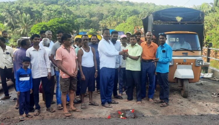 सार्वजनिक बांधकाम विभागाने त्याची दखल घेत ५ कोटी रूपयांच्या निधीतून या पुलाच्या उभारणीचे काम हाती घेतले होते. या कामाचा ठेका एस. एम. चिपळूणकर या कंपनीला देण्यात आला होता. या कामाचे भूमिपूजन भास्करशेठ जाधव यांच्या हस्ते झाले होते.पावसाळा तोंडावर असल्याने ठेकेदार सुरेश चिपळूणकर यांच्यासमोर पूल उभारण्याचे मोठे आव्हान होते. पूल खाडी पात्रात असल्यामुळे भरती-ओहटीमुळे कामात अडचणी येत होत्या. मात्र या ठिकाणी आवश्यक साहित्य, मनुष्यबळ, मशनरी तैनात करीत अल्पावधीतच हा देखणा व दर्जेदार पूल उभा केला. या पुलामुळे पावसाळ्यात निर्माण होणारी ग्रामस्थांची अडचण आता टळली आहे.उपसरपंच पंकज बिर्जे यांनी पुलाचे पूजन करुन पहिली गाडी सोडली. यामुळे ग्रामस्थांनी ठेकेदार सुरेश चिपळूणकर यांचा सन्मान करीत गावामार्फत आभार व्यक्त केले.