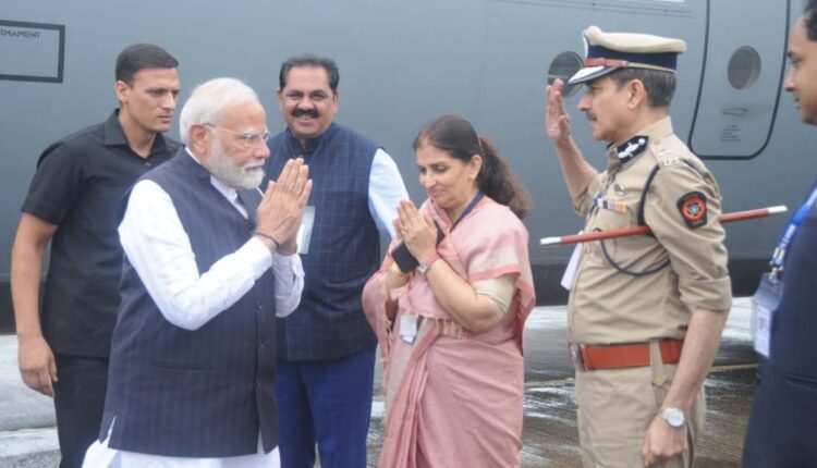 जळगाव | प्रधानमंत्री नरेंद्र मोदी यांचे लखपती दिदी मेळाव्यासाठी आज जळगाव विमानतळावर आगमन झाले.
