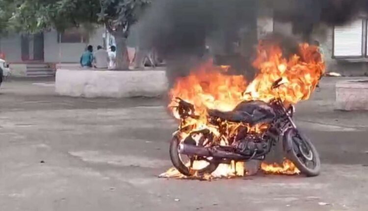 संतप्त आंदोलनकर्त्यांनी दुचाकी पेटवून केला शासनाचा निषेध