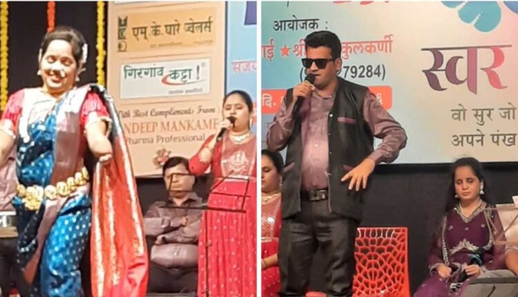 मुंबई | बोरीवली पश्चिम येथील प्रबोधनकार ठाकरे नाट्यमंदिरात स्वररंग प्रतिष्ठान आयोजित स्वरपंख या संपूर्ण दिव्यांग बांधवांच्या वाद्यवृंदाने मराठी गाणी आणि लावण्यांच्या खुमासदार सादरीकरणाने अतीशय कमाल केली. रंगमंचावरील कुणी प्रज्ञा चक्षु तर कुणाचे हात, कुणाचे पाय नाहीत परंतु केवळ जगण्याची जिद्द नाही तर सूर, स्वर, संगीत, वाद्य अशा कशातही आम्ही कमी नाही किंबहुना धडधाकट कलाकारांपेक्षा आम्ही काकणभर सरस ठरु, अशा प्रकारे सभागृहात आपापल्या अदाकारीने दाखवून दिले.